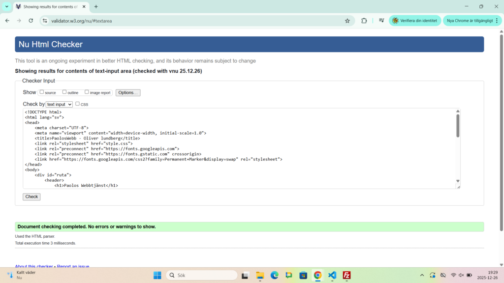 Användarvänligheten behöver förbättras, och jag vill göra sidan bättre för personer som besöker min sida oavsett förmåga. En viktig del är tillgänglighet, till exempel tydligare struktur med rubriker, bättre kontraster, alt-texter på bilder och enklare navigation. Det skulle göra webbplatsen lättare att använda för alla besökare.