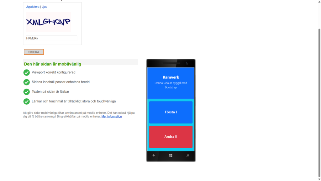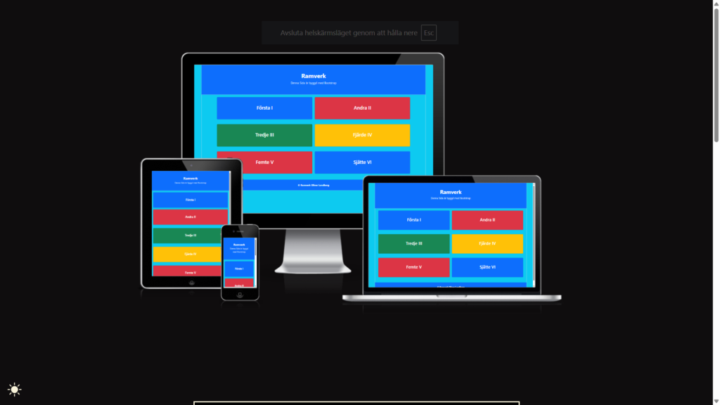 Sedan kommer vi till ramverk. Här valde jag att skapa en helt ny sida istället för att bygga om en tidigare. Med hjälp av Bootstrap kunde jag enkelt göra sidan anpassad för olika skärmstorlekar.