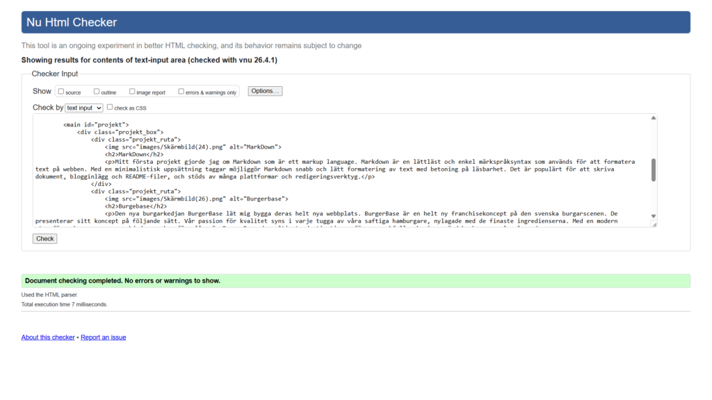 Jag har skapat en sida på beställning där målet var att återskapa originalet så noggrant som möjligt. Sidan innehåller instruktioner om hur man använder Markdown, och jag har försökt följa strukturen, designen och innehållet från förlagan. Fokus har legat på att få både layout och funktioner att stämma överens med originalet.