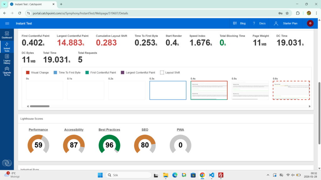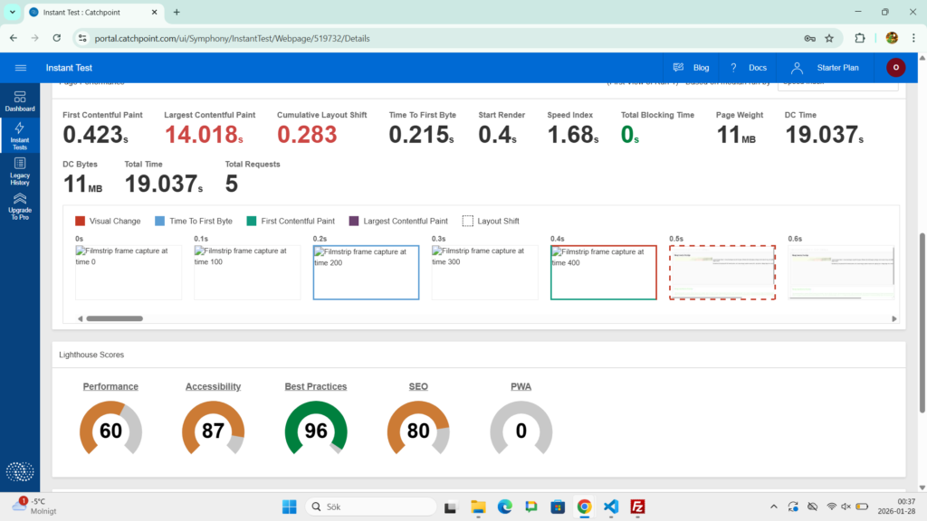 Efter dessa två ändringar ser man tydligt att bildprestandan kan förbättras relativt enkelt genom små justeringar, som att minska bildstorleken eller byta filformat.